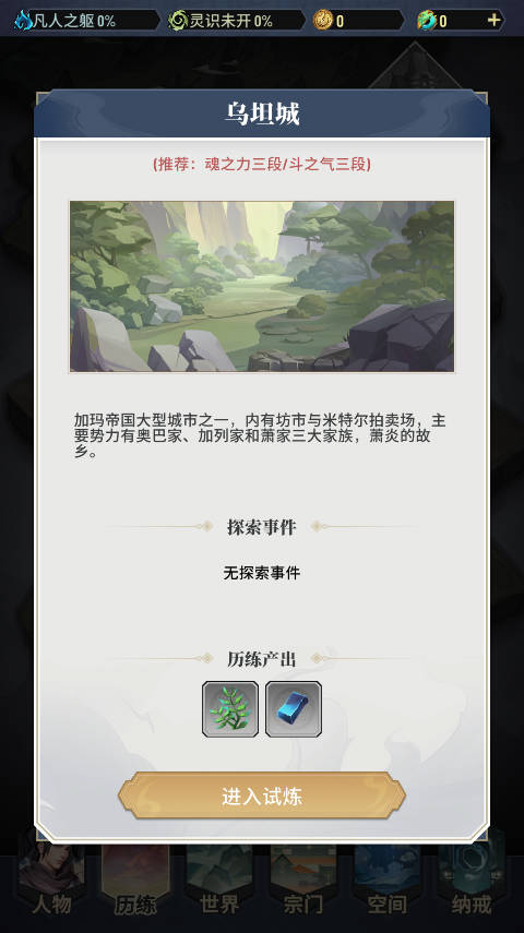 首先,成功登入后会进到主页面,可以选择要修炼斗气或魂力(境界突破到灵境或斗师后可以选择斗气魂力双修)