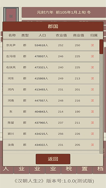 汉朝人生2是一款以大汉王朝为背景的沉浸式人生模拟手游。游戏从“平民视角”出发,把宏大历史与个人命运紧密串联,你可以寒窗苦读走科举仕途、勤耕经营做富商、漂洋经商积累家财,甚至在乱世中崛起,自立为帝。汉朝人生2以人物成长与资源管理为核心,早期以务农、打工、经商为主,稳健积累粮饷与人脉;中期重视科举、官场人脉与官职晋升的策略投入;后期则拓展到产业并购、家族关系与地位传承。系统里包含随机事件、婚姻联姻、子嗣培养、产业管理与地方政务,每一个决策都会影响名望、财富与后代发展,极强的因果链让玩家每次存档都像在书写“专属史书”。