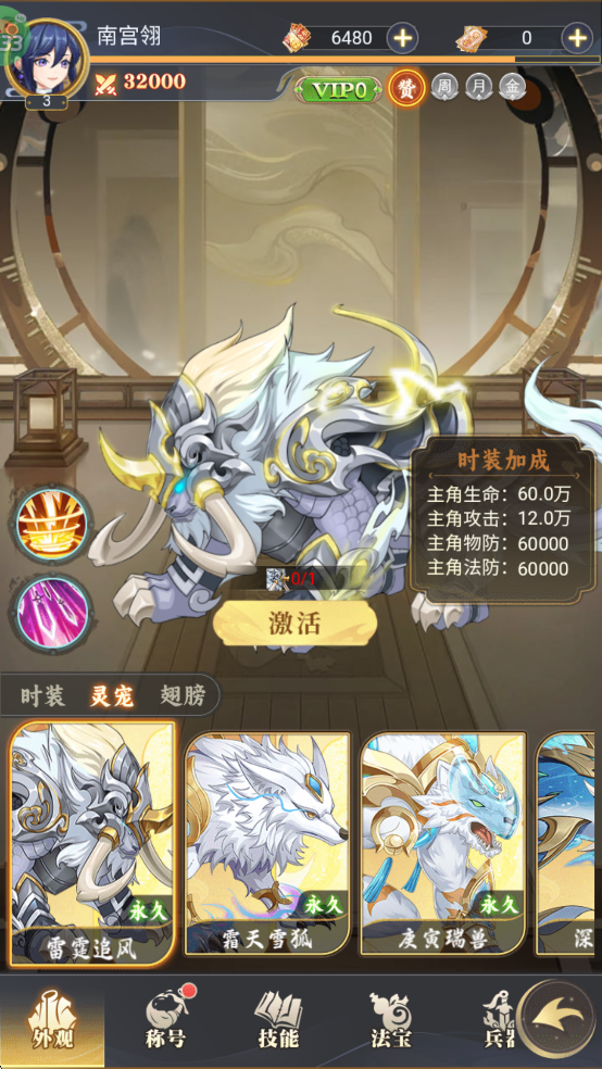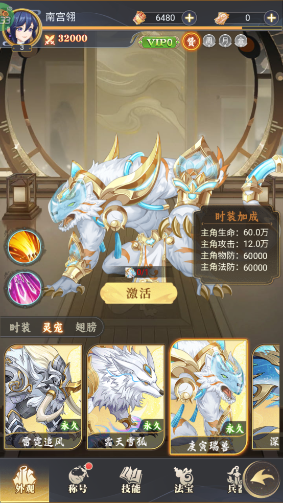 游戏特色鲜明,天天送6480代金券,上线豪礼让你战力飙升,盲盒玩法每天都有惊喜,还有霸气灵宠和炫酷时装等你解锁。特别是灵宠系统,每个灵宠都有独特的技能和成长路线,比如雷霆追风的弱点状态、霜天雪狐的寒霜效果以及九霄金龙的威慑能力,让战斗更具策略性。