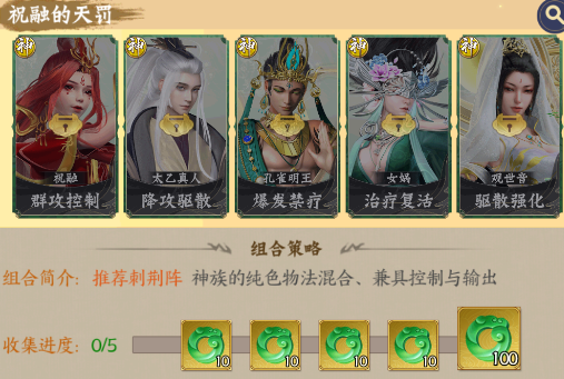 阵容组成:祝融、太乙真人、孔雀明王、女娲、观世音