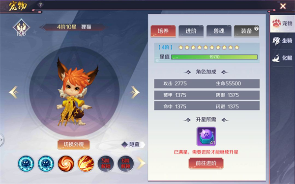 2、宠物进阶后不仅可以获得全新的宠物外观,还可解锁强力被动属性。