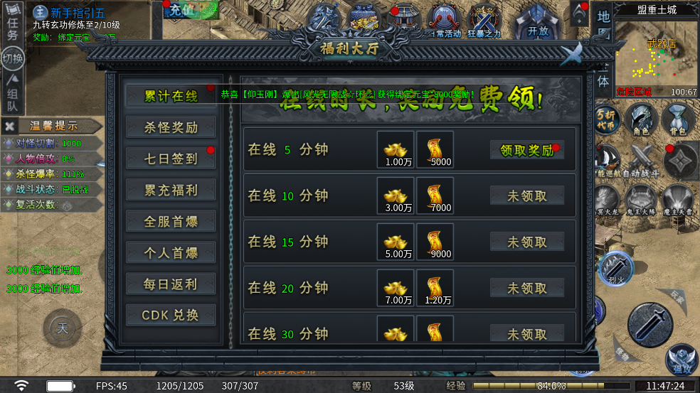 ★承天时运★ 在线时长达标即可开启承天时运,大幅度增加爆率!