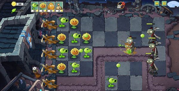 2、游戏开始时,你需要先挑选本局要使用的植物。由于植物数量有限,选择时要慎重。战斗中,你将有机会自由布置植物防线,但记得优先种植向日葵,确保有足够的阳光供给。
