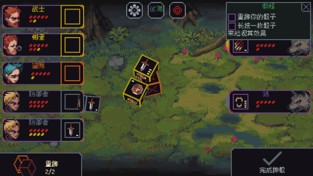 3、根据骰子掷出来的技能点击进行安放(当骰子骰到的是空面,可以点击重掷,每回合有两次机会);