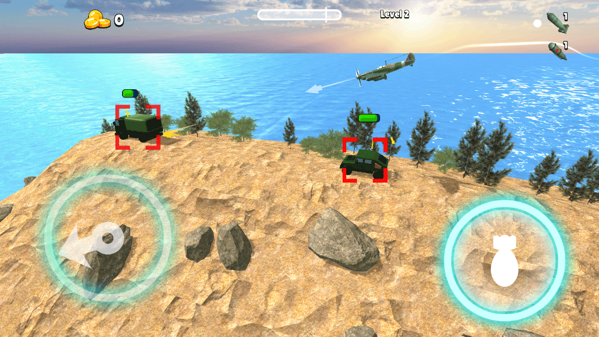 1、在这款游戏中,你将操控战机执行任务,目标是摧毁敌方运输车辆。独特的视角设计让你仿佛置身战场,体验空中轰炸的刺激与紧张。
