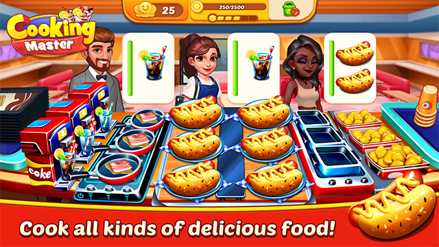 烹饪大师餐厅又名Cooking MasterRestaurant Game,是一款餐厅美食烹饪手游。游戏中,你将有机会升级各种厨具,包括油炸锅、搅拌器和平底锅等,制作出各种饮品、水果、蔬菜和烧烤等美味佳肴,满足不同顾客的需求并提升你的餐厅声誉。