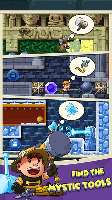 这款游戏看起来挺有意思的,是一个冒险闯关类的手游,玩法主要是探索迷宫,寻找失落的宝藏钻石。每个关卡都有谜题和障碍,需要玩家动脑筋解决。操作方面简单易上手,可以通过滑动屏幕控制角色移动,避开巨石和其他危险。游戏里还有宝箱惊喜,可能会有道具或指南针之类的奖励,挺吸引人的。