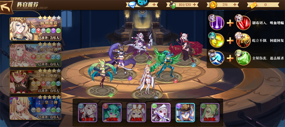 阵容组成:德古拉+希瓦娜+玛利亚+暗裔精灵+迦楼罗