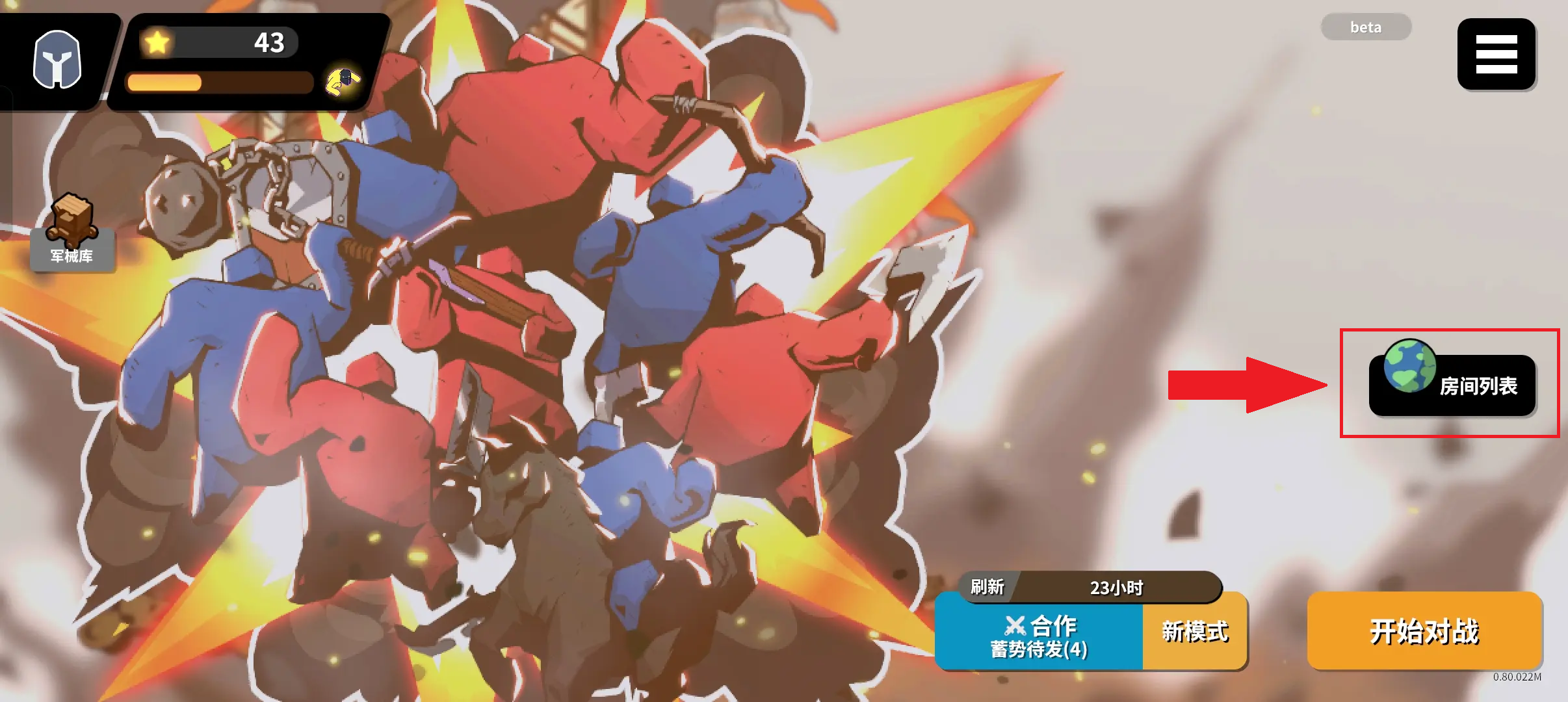 1、在主界面点击进入房间列表。
