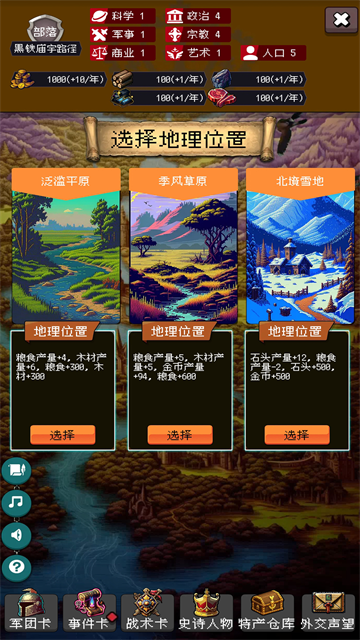 1、创建自己国家时,玩家可以携带一些卡牌作为初期助力带入游戏