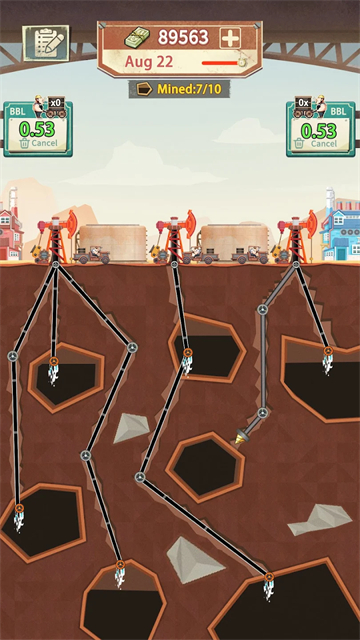 作为游戏的主要玩法,就是勘探—立油井—拉管道—运输—售卖—勘探;到最后结算的游戏过程。