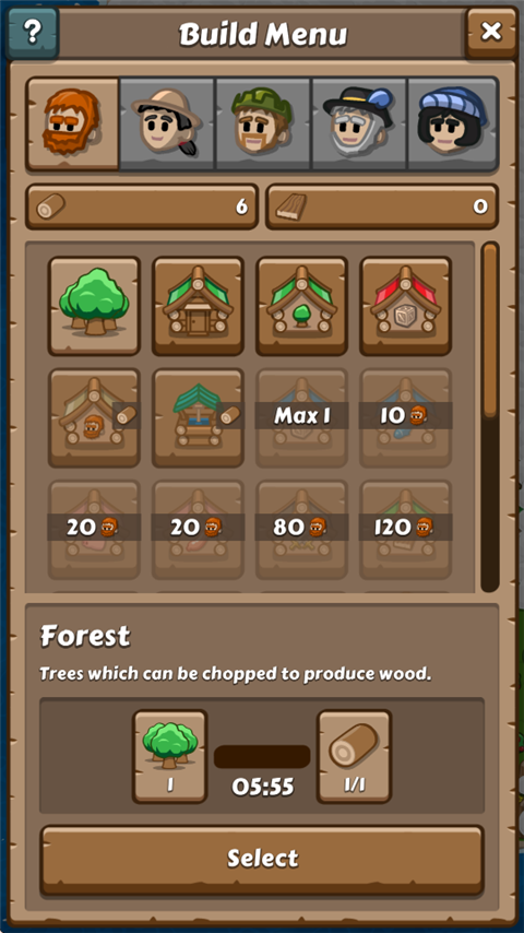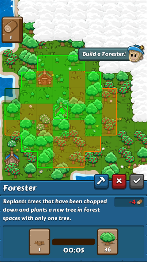 2、拥有足够木材后,点击锤子,可生产各种建筑。