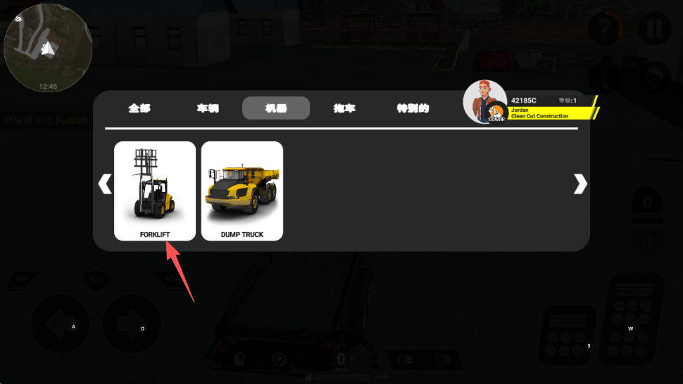 5、叉车属于机械,点击“机械”,点击全部也是可以的。