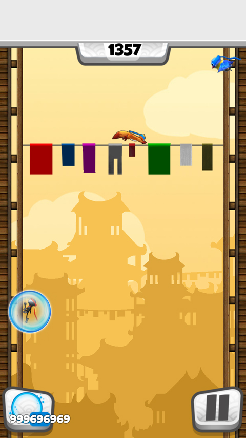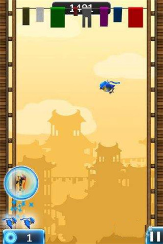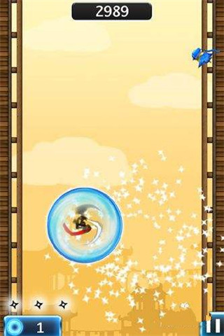2、跳跃过程如果打落了狐狸、飞鸟或者忍者扔出的飞镖累计到三个,就可以自动快速向上跳跃。