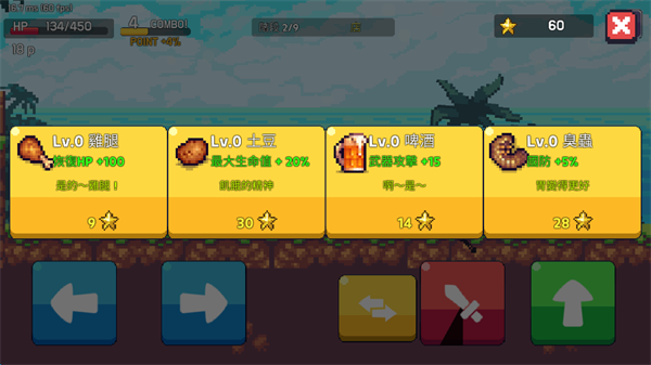 3、击杀怪物后,概率掉落星星,可以用于后续购买各种武器或者buff。