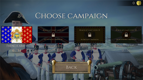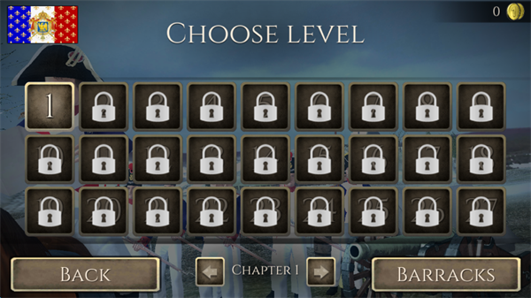 2、选择关卡,后续的国家战役需要上一个战役达到一定的要求。