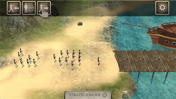 7、通过屏幕左上角的三个指挥键控制军队的前进,待命和后退,双击想要控制的士兵,可以直接操控。