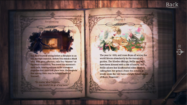 海市蜃楼之馆(The House in Fata Morgana)是一款以哥特风打造的西洋浪漫悬疑AVG文字游戏,玩家扮演主角醒来发现自己在一座豪宅中,此刻的你不知道为何失忆,一位神秘的女仆会引导你穿越时空回顾不同时代在此豪宅上演的四段悲剧故事,这些故事都揭示了一个不同的时代,每个故事都充满了爱、失落、背叛和绝望。游戏中,玩家将通过文本选择和分支剧情展开不同故事线剧情,过程中可以收集遗物,每件遗物都凝固了某个瞬间的创伤,玩家需利用物质性接触来重构记忆,最终将女性创伤记忆转化为可触碰的叙事物质,以提供了一个跨时空疗愈对话的机会。