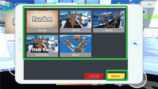 3、拥有三个竞速赛道和一个道具赛道,选择好地图后,点击【Select】即可。