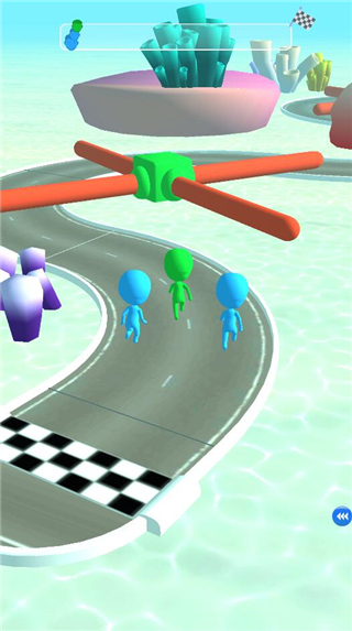 2、进入比赛拉动屏幕中的糖豆人可以控制他的前后左右的方向。