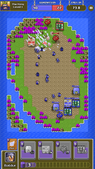 统治战争(Domination)是一款快节奏的经营策略游戏,采用像素风格呈现简洁细腻的画面和生动有趣的音效,营造出独特的游戏氛围。统治战争游戏内玩家需不断收集唯一资源——木材,并根据建筑和技能需求进行策略部署,通过判断对手兵种来实施反制。并且,游戏还提供手工离线地图,让玩家在单人模式中积累经验,从而在PVP对战中提升胜率,冲击更高的竞技场排名。