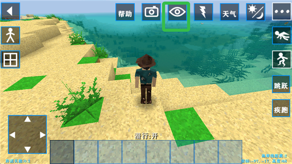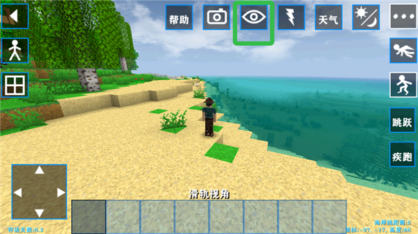 2、目前是第一人称视角,点击眼睛图标,即可切换至第三人称视角。