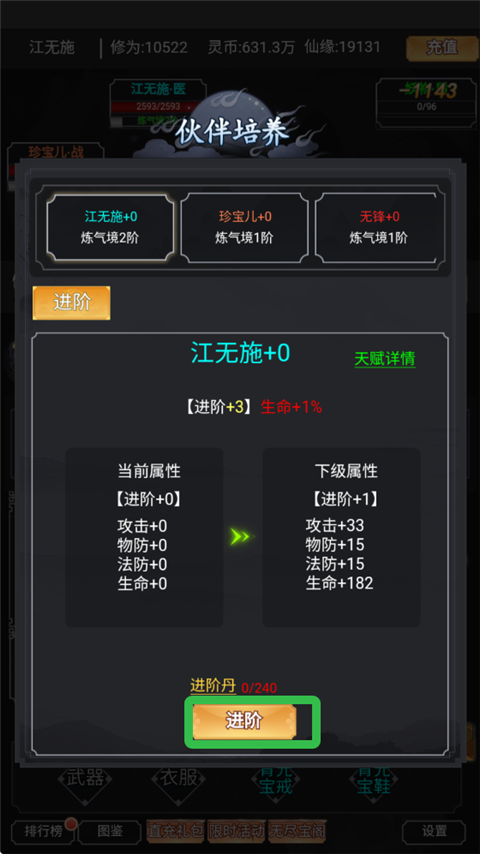 各伙伴进阶至更高境界可拥有更高的伤害力。