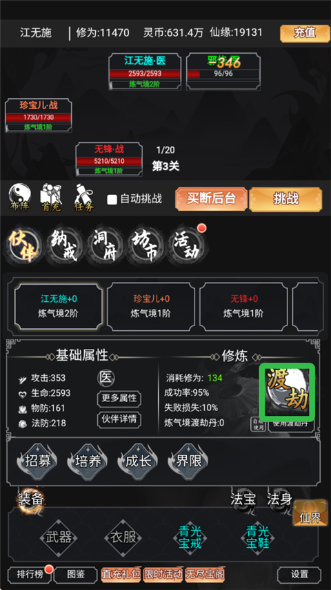 3、各种可爱有趣的伙伴供玩家招募,还加入了炼丹炼器、法宝神器等培养元素。