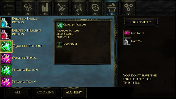 背包和装备:背包当中可以查看玩家当前游戏角色内有哪些可以使用的材料和装备,背包的下方有分类选项,玩家可以快捷的从中找到相对应的东西;点击空装备栏,就能够查看是否有装备可用。