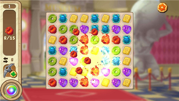 3、游戏中你化身解谜的侦探,根据颜色随处交换并匹配文物,以收集物品,装饰博物馆的房间和大厅,完成神秘任务