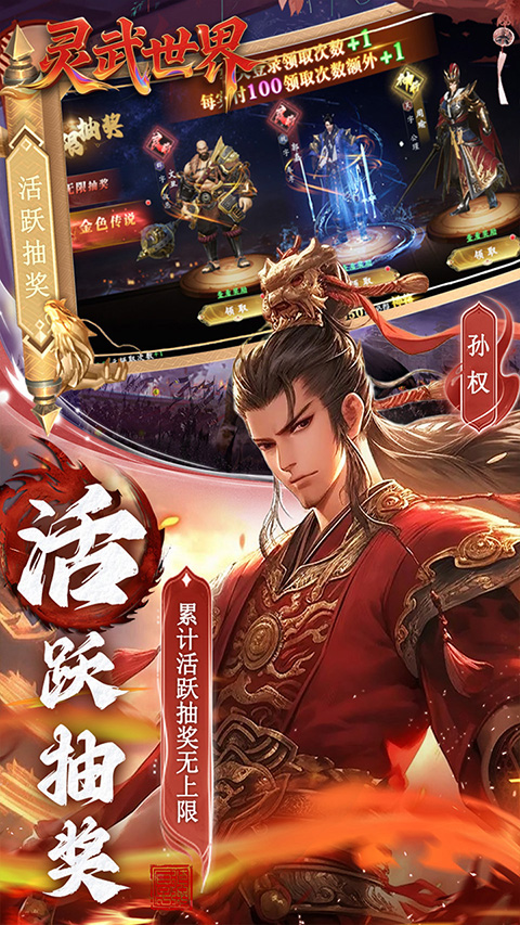 3、每天登录送百连抽,最高可达十万抽,名将神将全部免费抽!