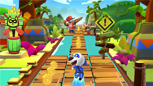 此外,关于游戏的操作而言,它与大家熟悉的跑酷类游戏有所不同,因为游戏的背景是设定与被浣熊破坏的世界,所以在游戏中玩家们不仅要熟练的使用左右移动、跳跃滑动等操作,而且还要时时刻刻面对拿着各种各样武器的浣熊,它们不会对你造成威胁,但会成为的阻碍,因此你需要做的就是直接冲撞它们!另外,汤姆猫英雄跑酷为了增强玩家的可玩性,它还设定了修建家园、解锁皮肤等玩法,不同的玩法可赋予玩家更多的欢乐!感兴趣的你还在等什么呢,快来下载体验吧。
