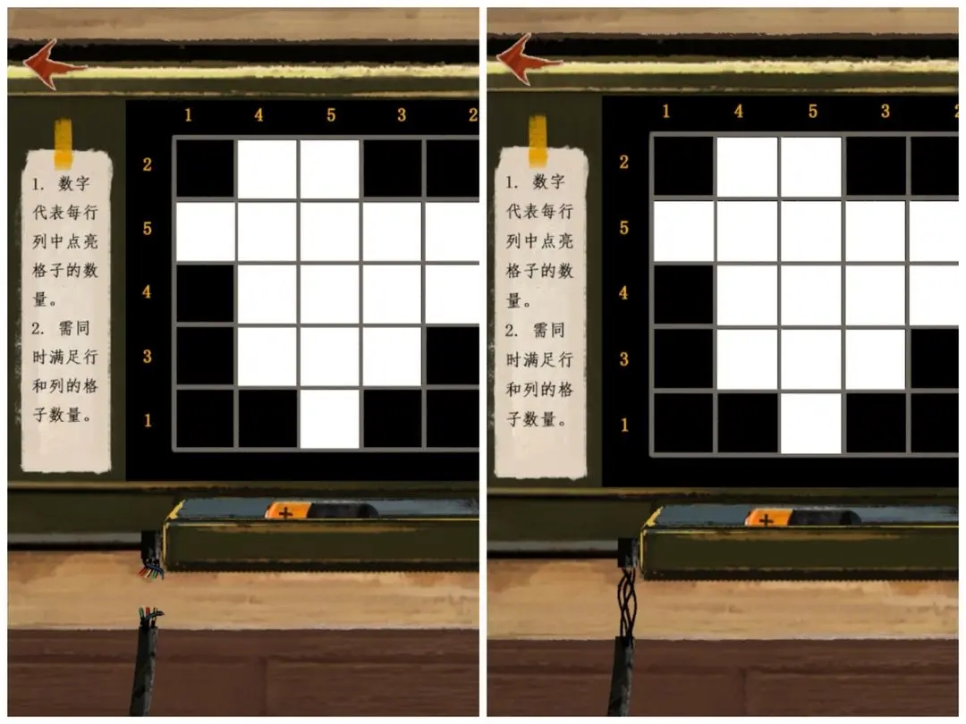 将之前门上获得的小人放在桌子上,其他的站立小人才能移动(移动到如图所示位置)