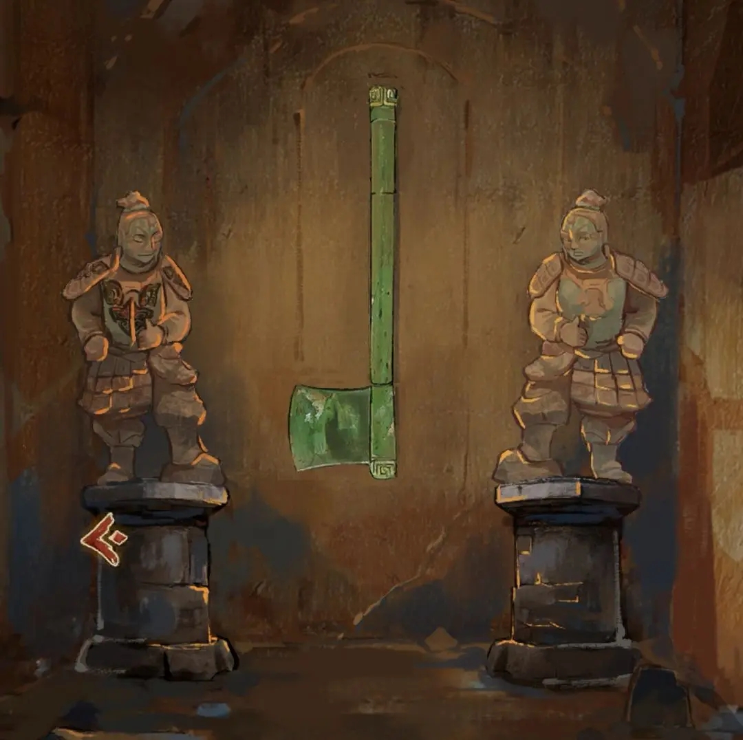 将雕像中间的武器拼成青铜斧子得到另一个神人面具。