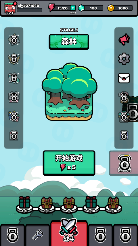 1、进入游戏主界面后,点击“开始游戏”即可开启战斗;
