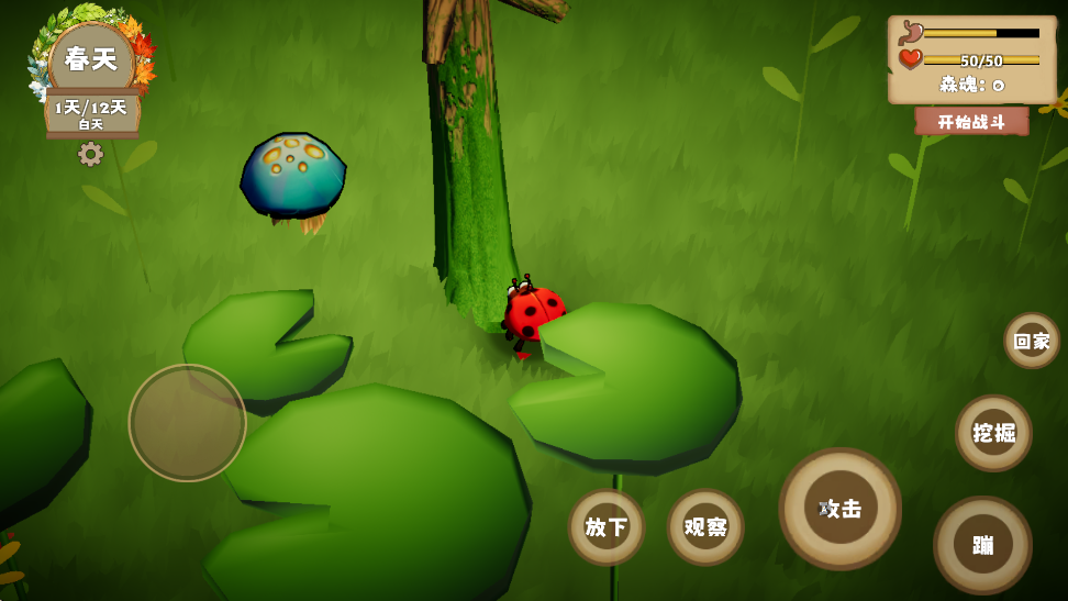 《我是虫虫》是一款挺有意思的休闲手游,你扮演一只小瓢虫,在微观世界里生存12天。每天分为白天和黑夜,白天挖资源、探索环境,晚上就要战斗保护家园。听起来有点挑战性,但也挺有趣的!游戏里有攻击树木获取食物的玩法,但要注意野外危险。战斗时需要跟着音乐节奏点击攻击敌人,感觉有点紧张刺激。