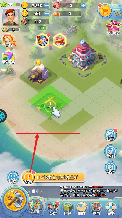 2、进入游戏我们需要建一座金矿,这样我们就可以获得源源不断的金币