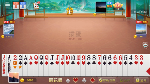 对局时合理利用牌型,如顺子、炸弹、同花顺等,注意与队友配合,还可使用智能理牌功能辅助整理手牌,提升出牌效率。