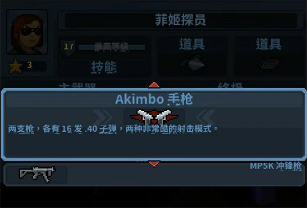 3、到了进阶阶段解锁的核心能力有双持射击模式和特种冲锋枪配置。Akimbo系统支持双枪各16发的交替射击,适合在中距离进行压制;MP5K定制冲锋枪在短程交火的时候有穿甲优势。建议搭配联邦司法技能,从侧后方位发动攻击能触发致命打击效果。