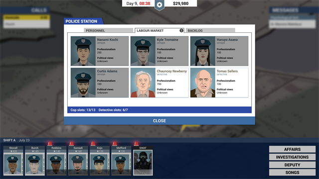 你的警察局有一定的编制,也就是带薪职位的数量。你可以到劳动市场雇佣任何可用的申请人,以顶替因公殉职警察的职位空缺。