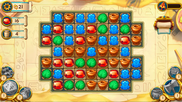 《埃及的珠宝》是一款结合三消解谜和城市建设的手游。玩家扮演年轻的建筑师,在古埃及的历史背景下完成任务,帮助角色解决问题并阻止邪恶势力。游戏不仅有丰富的剧情,还融入了历史元素,让玩家在休闲娱乐中体验古埃及的文化。