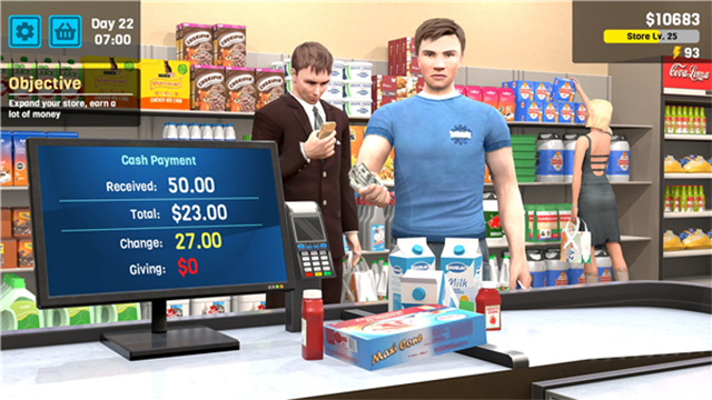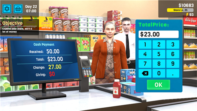 1、引人入胜的超市模拟游戏《超市经理模拟器》中,扮演经理的角色!