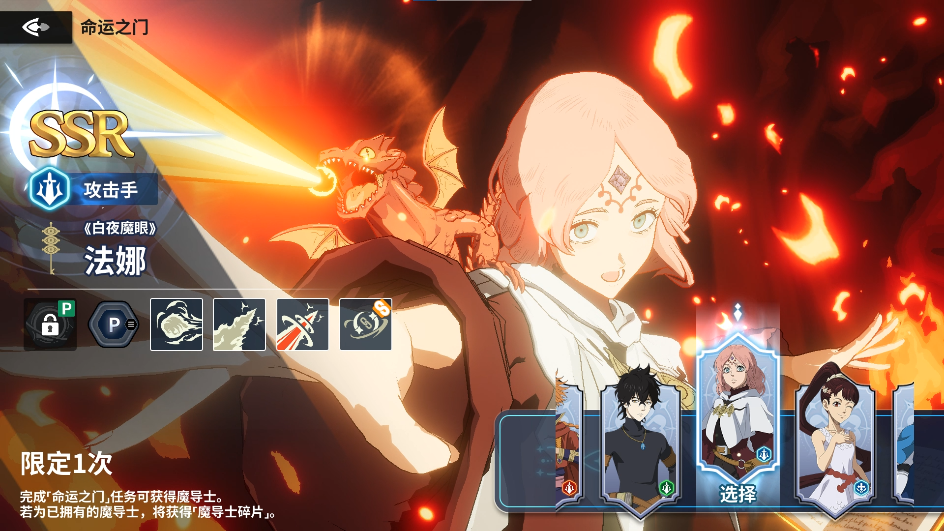 在命运之门中,可从给定范围中自选1名心仪的SSR魔导士作为目标奖励。