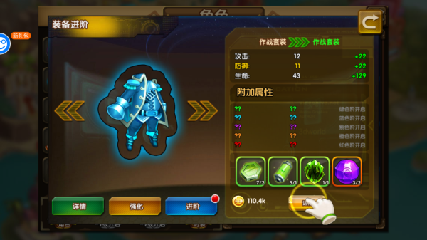 6、当满足进阶条件时,点击进阶可对装备进阶