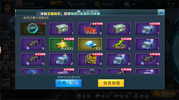 参加每天的签到,也会获得一些资源,包括钻石和升级资源。