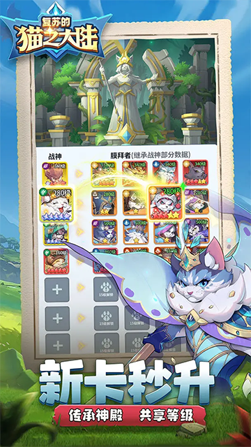风火水土,光暗交织。数十位猫族传奇英雄为你助阵。寻求最佳的阵容搭配,打造最强神兵,能帮助你无往不利。更有关羽,秦始皇,悟空,哪吒等华夏神话史诗英雄,虚空降临。