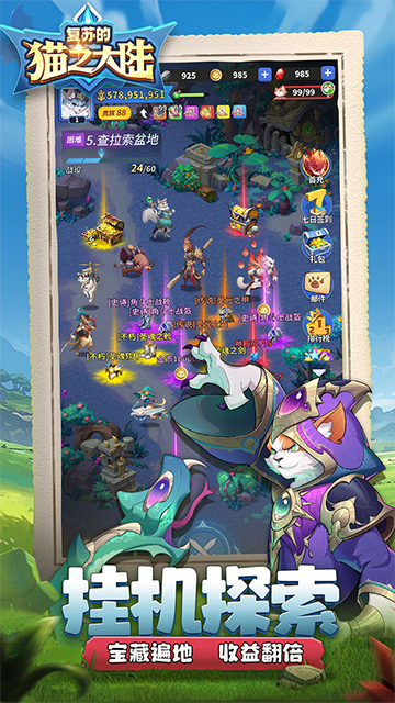 黑巫师可不会让你轻松得逞!带领你的猫族英雄小队,踏上复仇之旅,不断击败拦路的黑暗爪牙,解锁各种神秘事件和奇遇宝箱,争夺沿路的村庄和资源点。