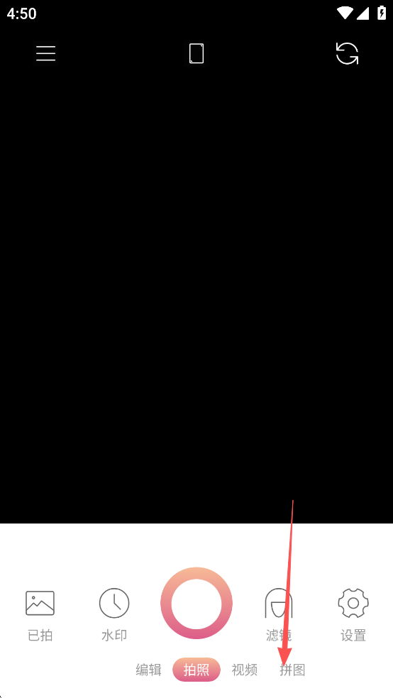 1、打开相机,点击【拼图】
