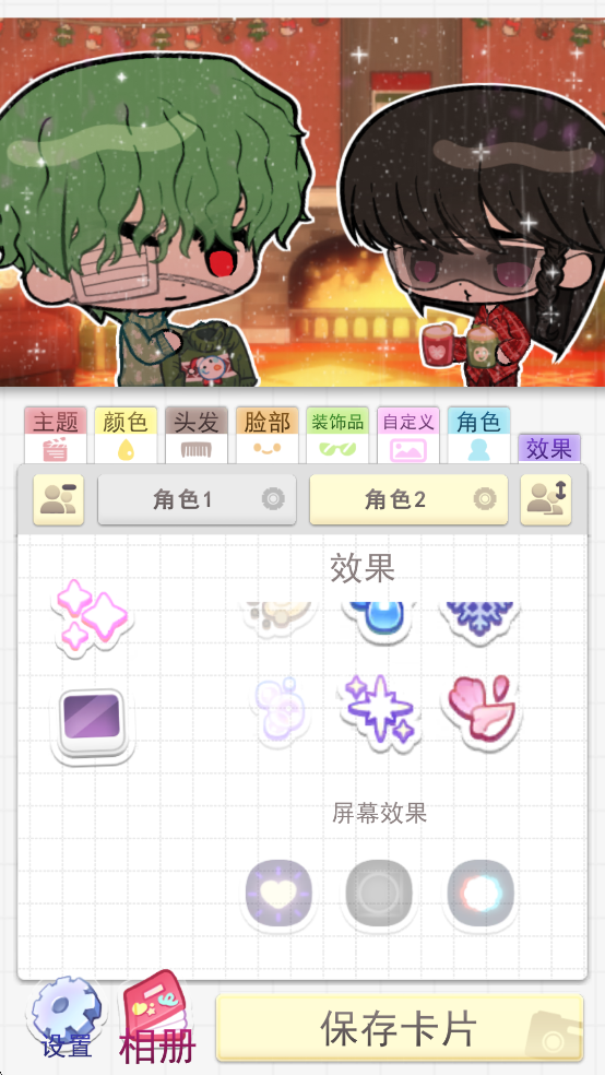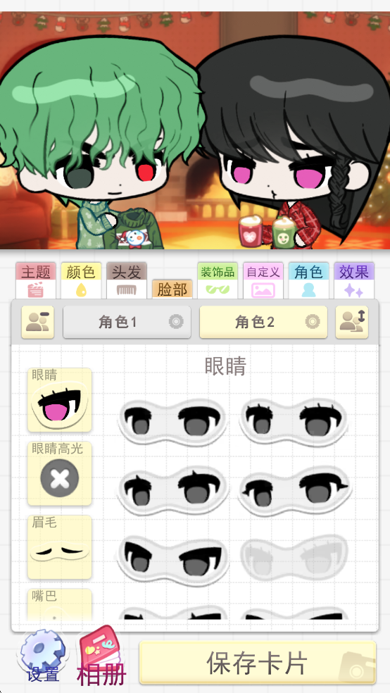 游戏有好多特色功能,比如支持同时创建两个角色,还可以用颜色代码微调颜色,甚至加滤镜和边框来提升画面质感。我最喜欢的是给角色设计独一无二的造型,然后保存下来放在相册里展示,感觉自己像个设计师!新手的话也不用担心,游戏教程很详细,从主题选择到装饰品搭配都有指导。