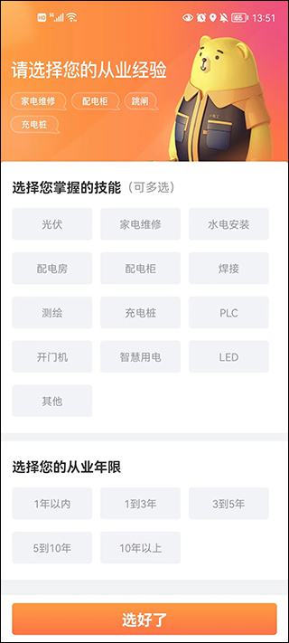 1、对于e电工的电工师傅,可以选择你的专属领域技能还有你的行业年龄,这样系统能够分配更合适你的订单。